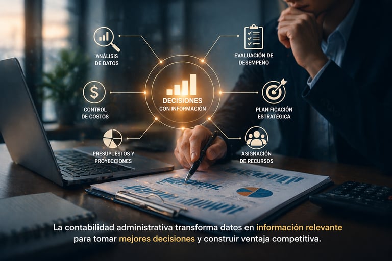 NOTA: De datos a decisiones: la contabilidad administrativa como sistema que transforma información en criterios para la gestión y la acción estratégica - elaboración propia mediante inteligencia artificial (OpenAI).