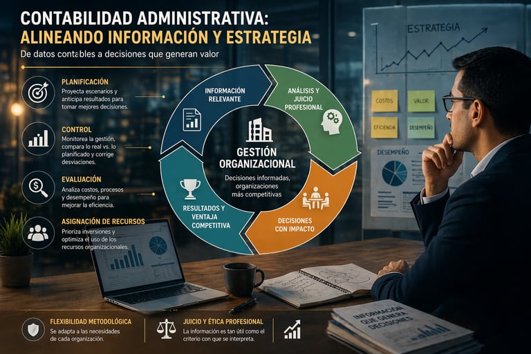 NOTA: Información, juicio y decisión: la contabilidad administrativa no solo entrega datos, sino que estructura el razonamiento organizacional bajo criterios técnicos y éticos. - elaboración propia mediante inteligencia artificial (OpenAI).